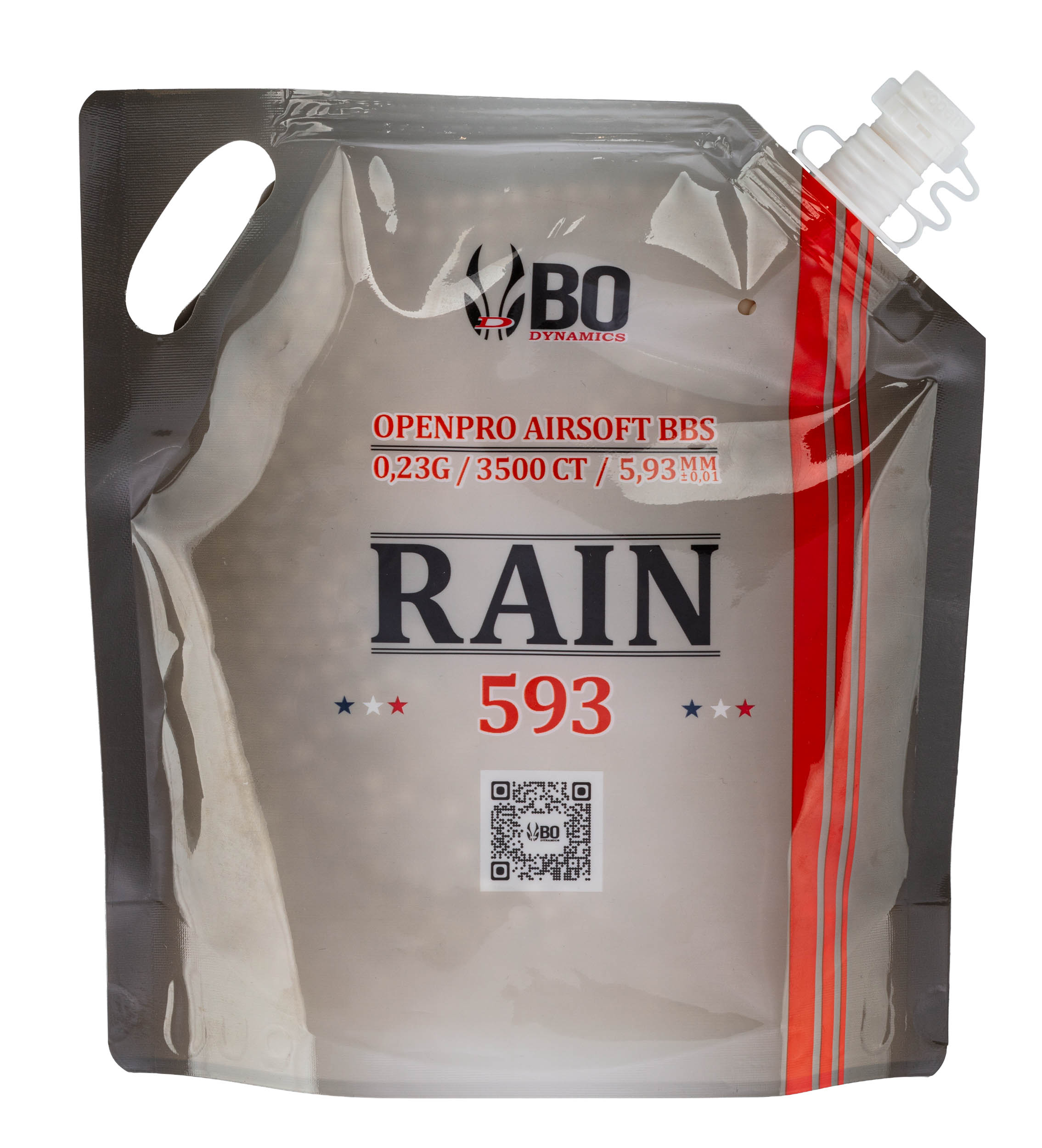 The BO dynamics rain 595 0.23g pellets for 5.95 caliber are supplied in a heavy-duty bag with a quick-loading cap and carrying handle.
