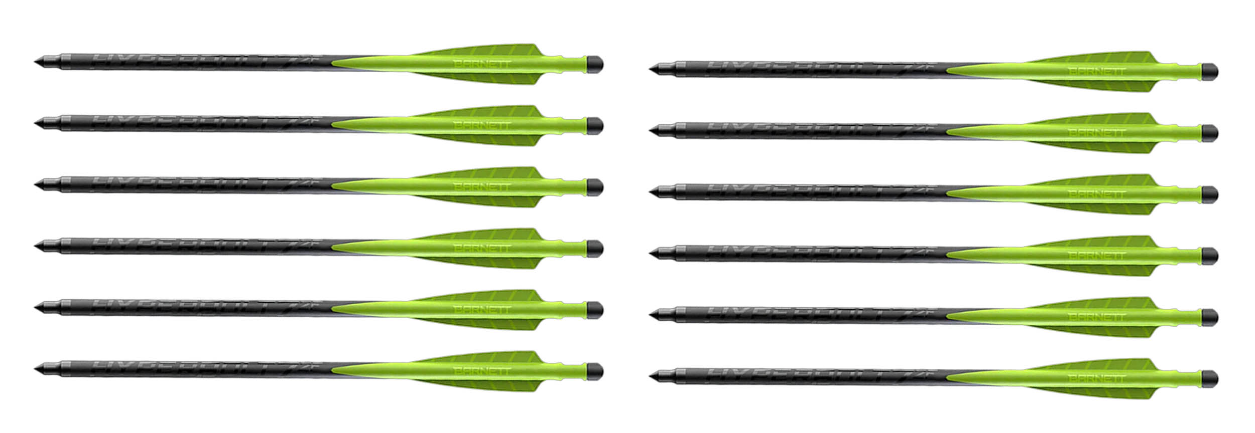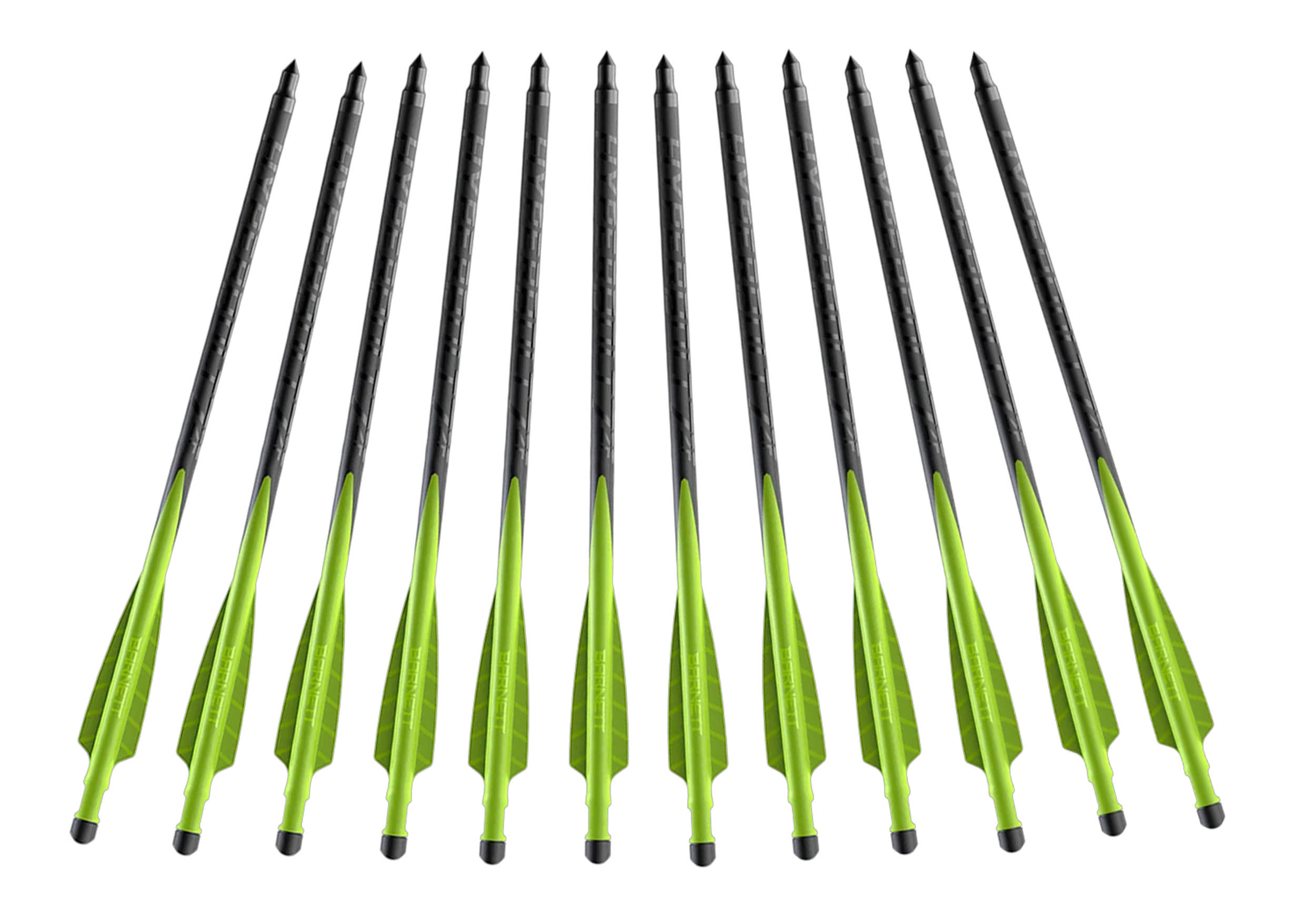 HYPERBOLT propose un blister de 12 carreaux 7 pouces à empennage double, parfaits pour le tir rapide avec l’arbalète DEMUN TRI-STRIKE.