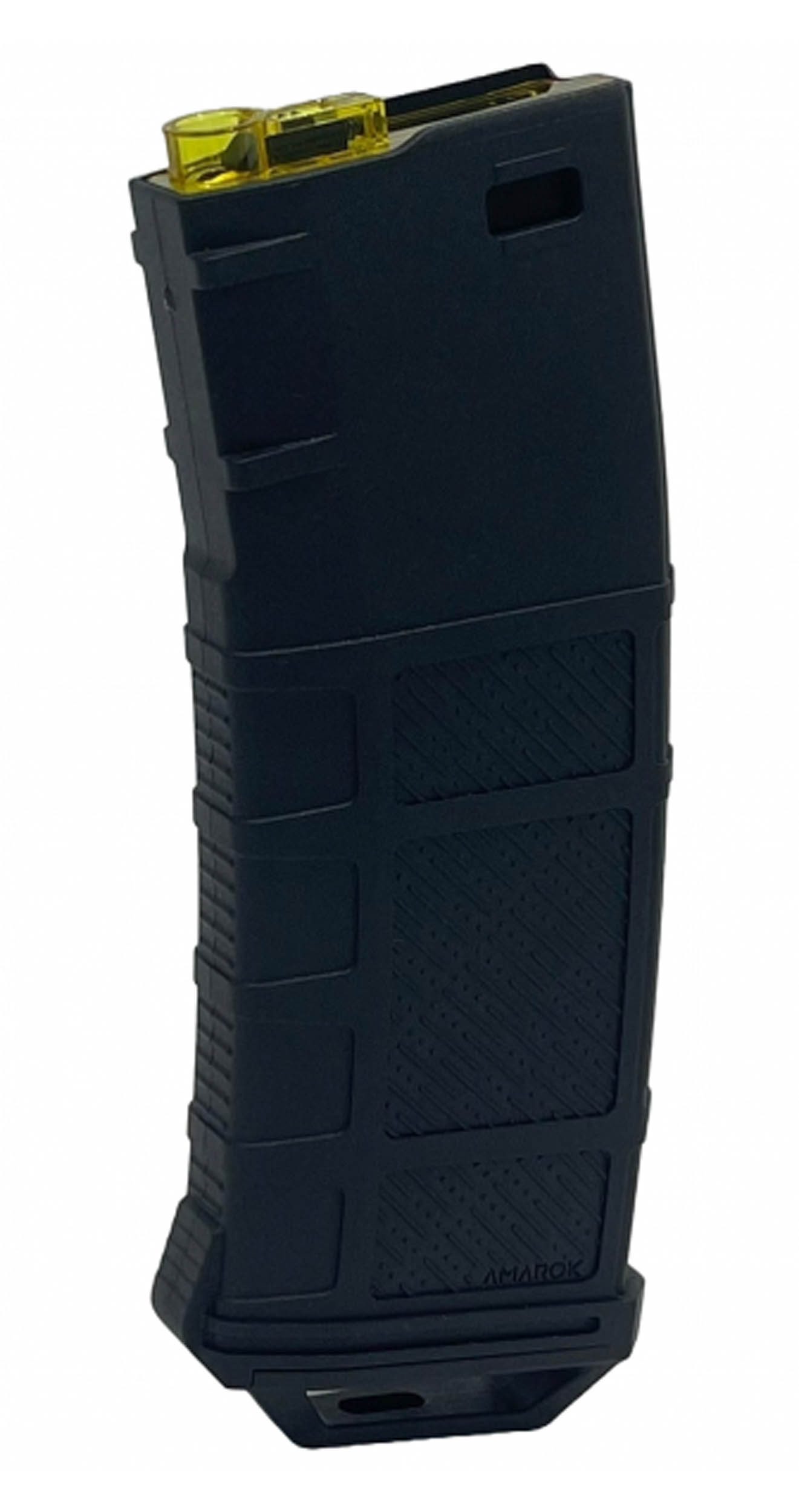 Contexte : AMAROK, chargeur airsoft, AM250, 250 billes, Type A, Mid Cap, M4, M16, AEG, HPA, polymère, ressort haute tension, grip antidérapant, réplique airsoft, accessoire airsoft