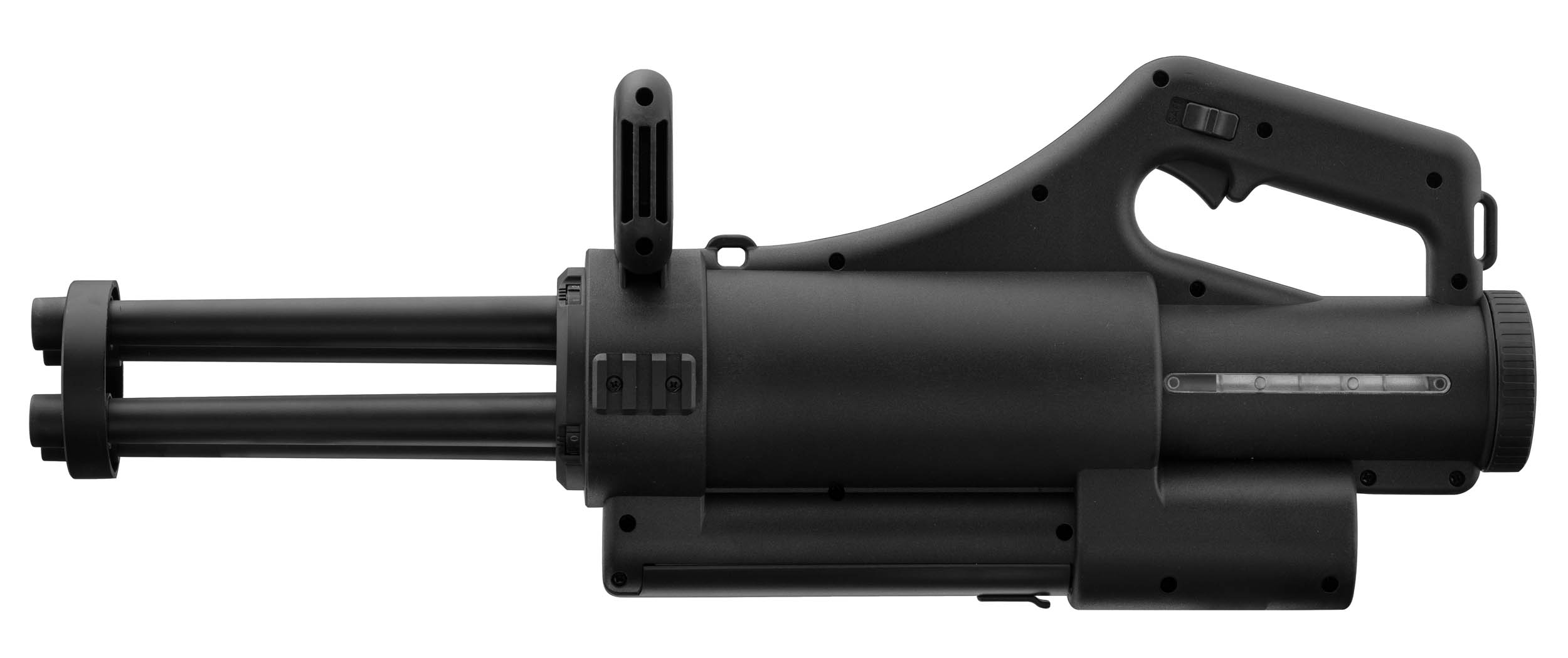 Son fonctionnement repose sur un système de canons rotatifs qui se mettent en mouvement à chaque tir. Chaque canon dispose de son propre hop-up réglable, permettant d'optimiser la trajectoire des billes. Ce type de configuration offre une dispersion maîtrisée et un volume de tir particulièrement dense.