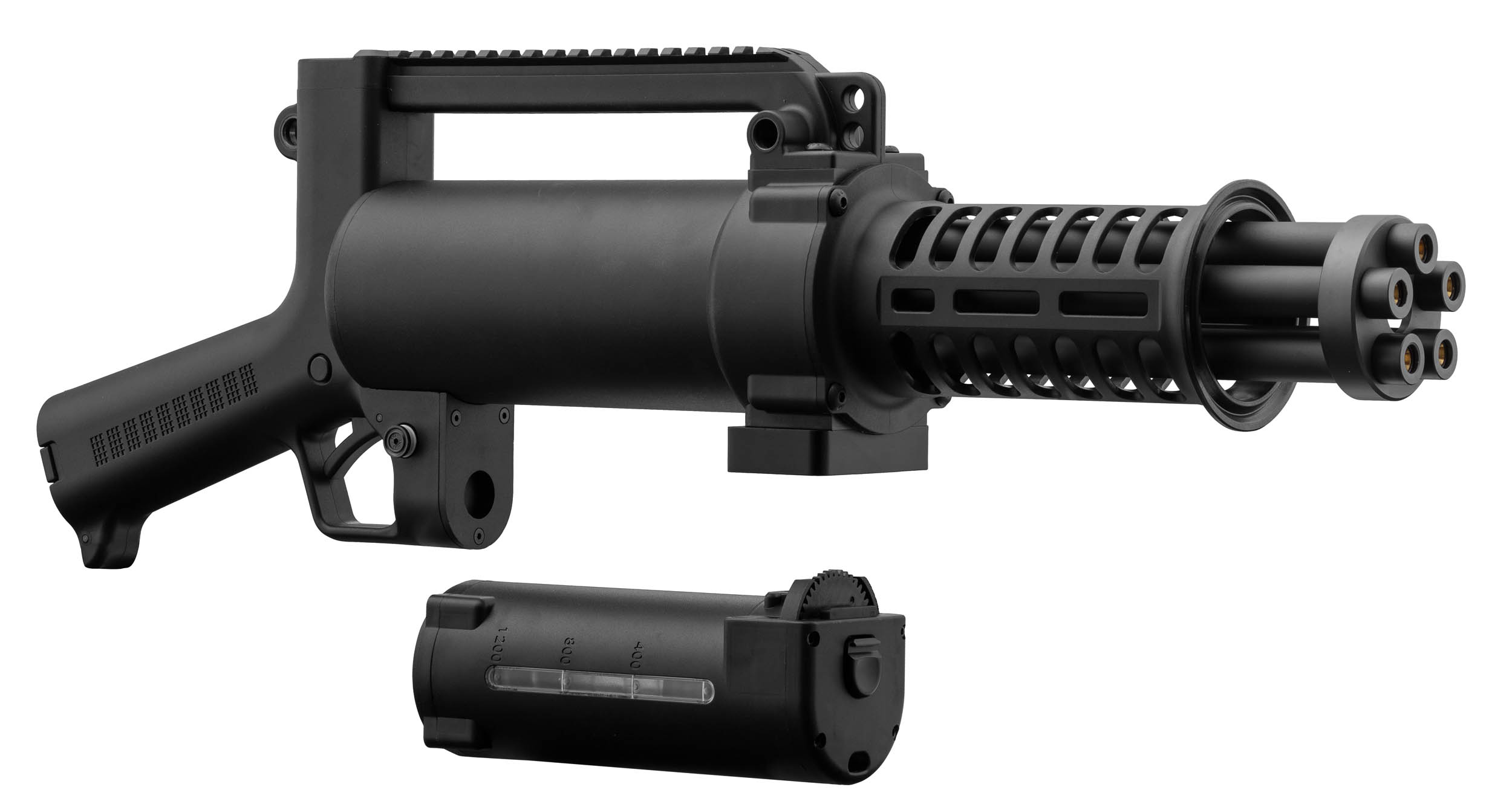 Inspirée des systèmes Gatling, cette réplique Minigun délivre une cadence impressionnante (jusqu'à 36 billes/seconde). Sur le terrain, cela change tout : on contrôle les zones, on bloque les déplacements... et on impose le rythme.