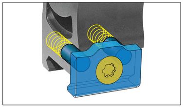 - Dispose d'une plaque de verrouillage à encastrement, contrôlée par des tiges de guidage à double ressort, en liaison avec le rail. Le verrouillage se fait par vis Torx pour assurer un maintien sûr.