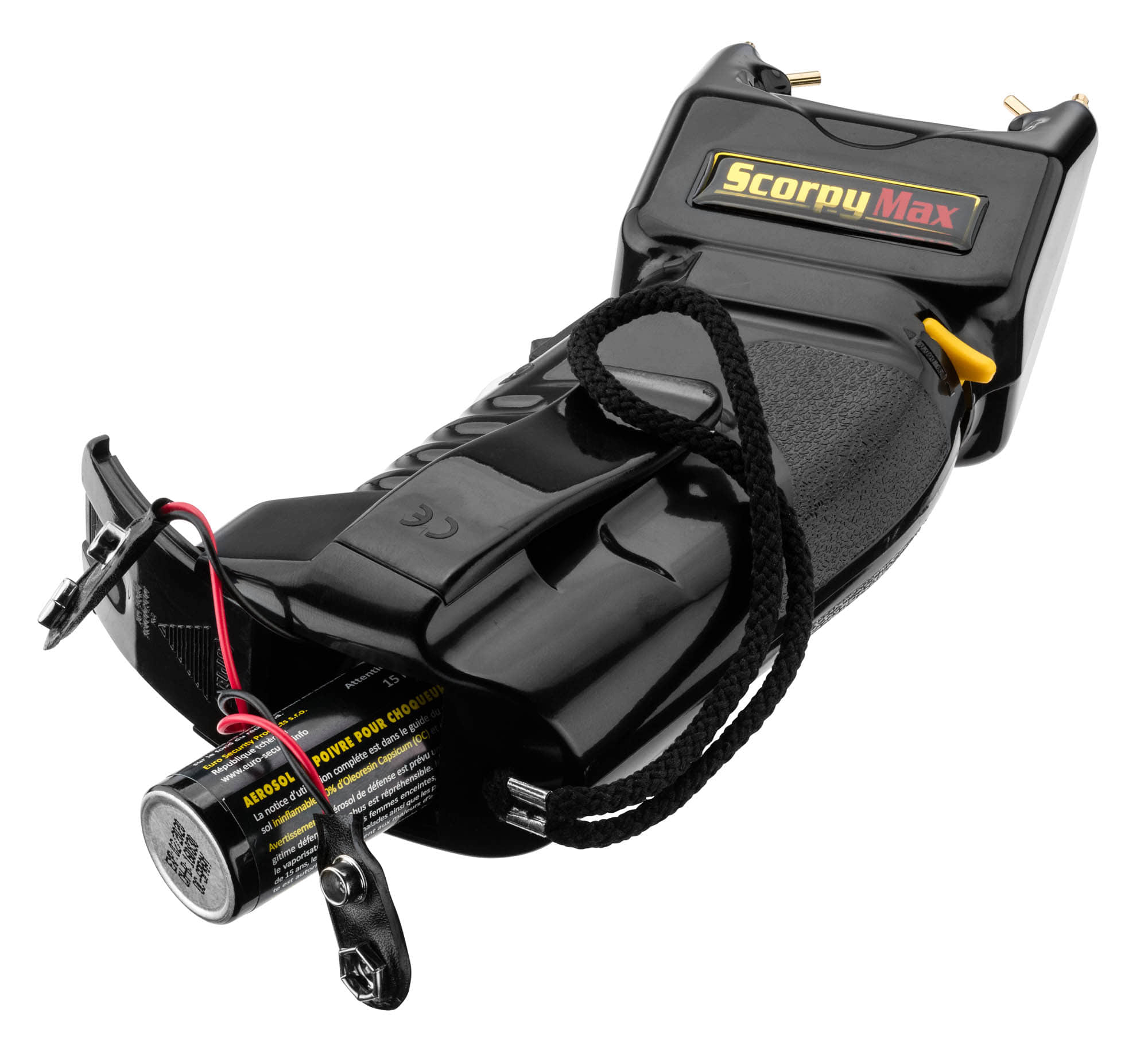 Le SCORPY MAX est un puissant dispositif défensif. Une combinaison d'électrochoc 500 000 volts avec un pulvérisateur a gaz défensif. Un appareil deux en un qui augmente considérablement vos chances de se défendre en cas d’agressions dans n'importe quelle situation.