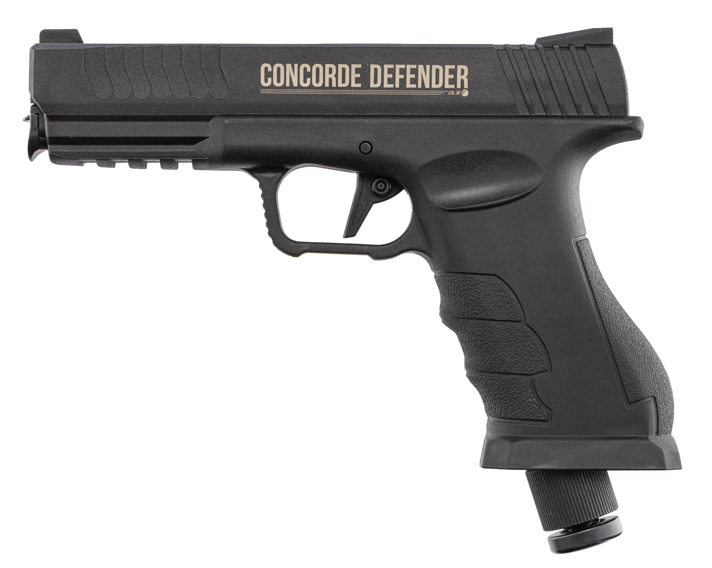 Le pistolet de défense Concorde Defender CD50 est conçu pour offrir une solution efficace en matière de protection personnelle. Fonctionnant au CO2, il propulse des balles en caoutchouc de calibre .50 avec une énergie de 13 joules, assurant une dissuasion immédiate en cas de menace. Son design imposant et ergonomique garantit une prise en main ferme et sécurisée.