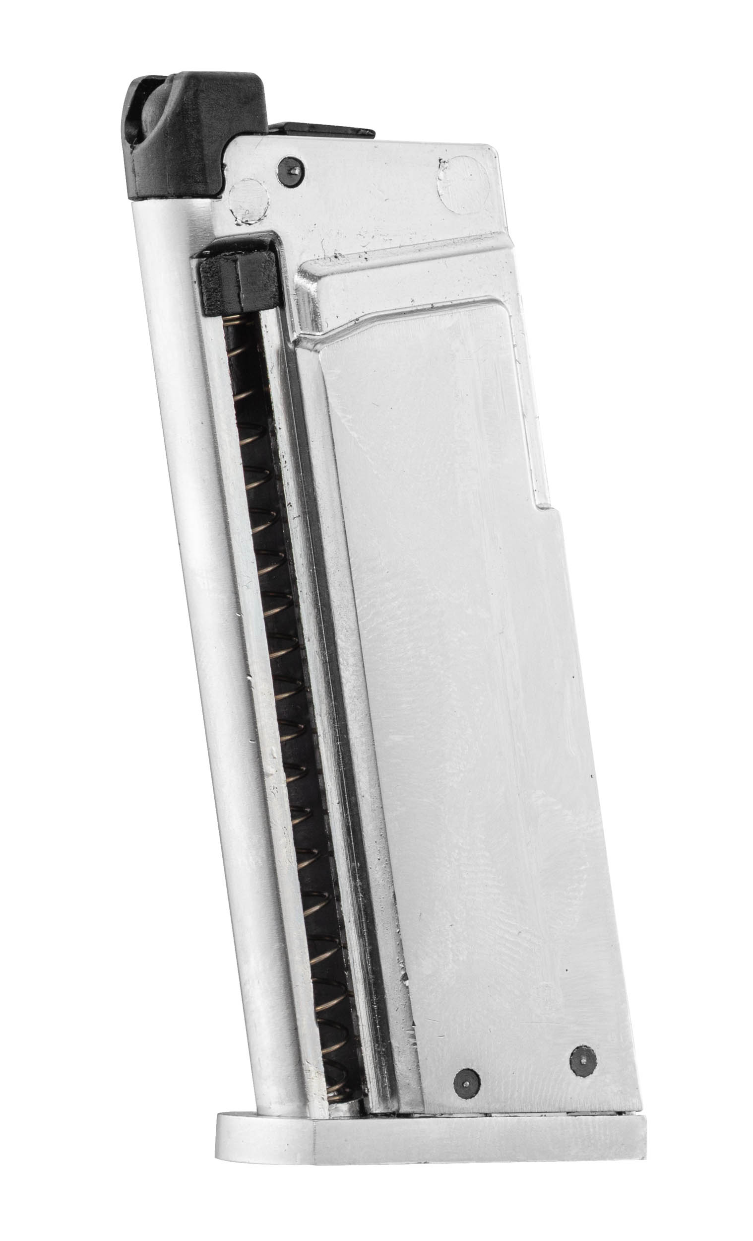 Un bouton-poussoir situé en bas de la poignée gauche libère le chargeur.