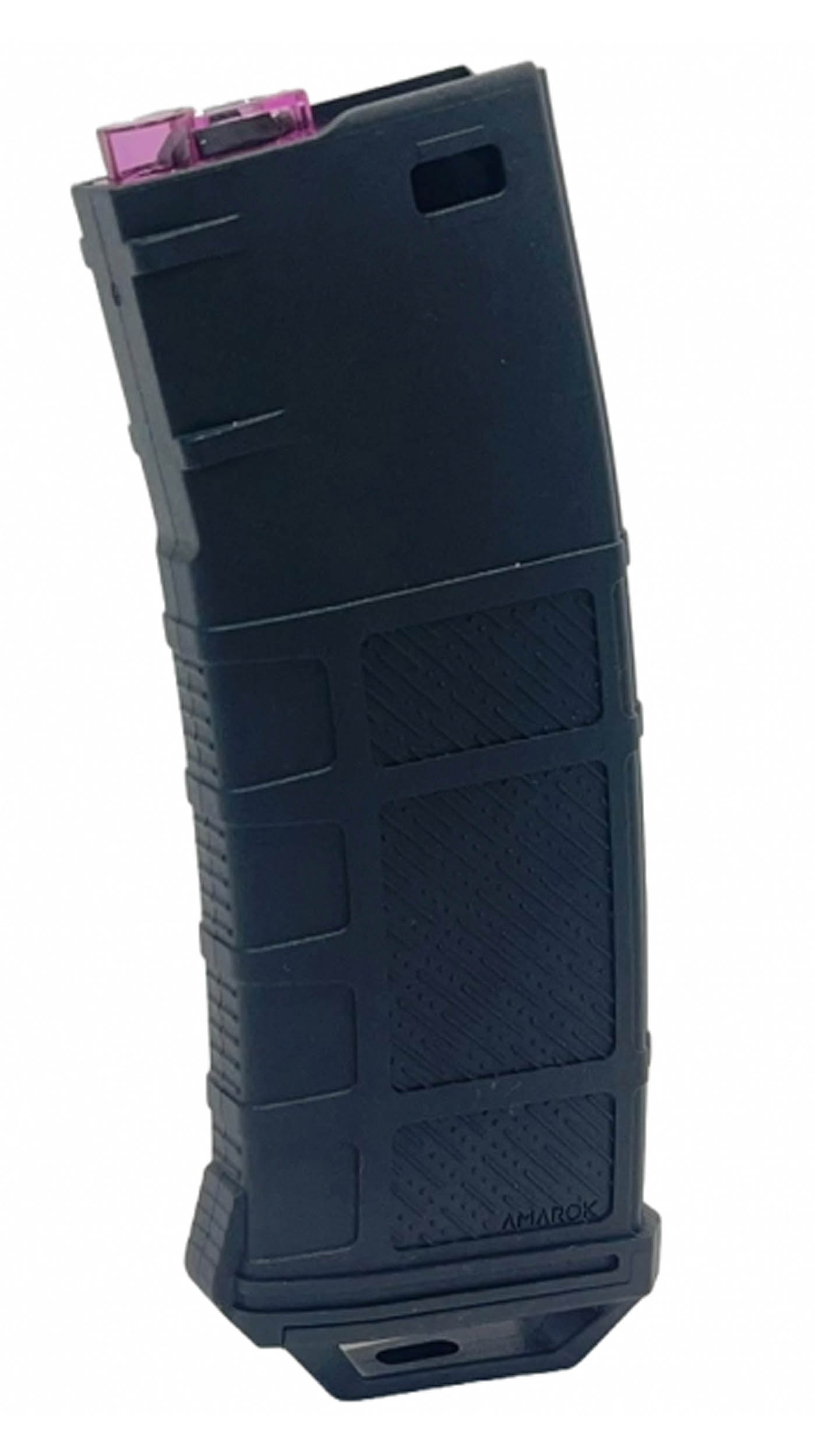 Contexte : AMAROK, chargeur airsoft, AM250, 250 billes, Type A, Mid Cap, M4, M16, AEG, HPA, polymère, ressort haute tension, grip antidérapant, réplique airsoft, accessoire airsoft