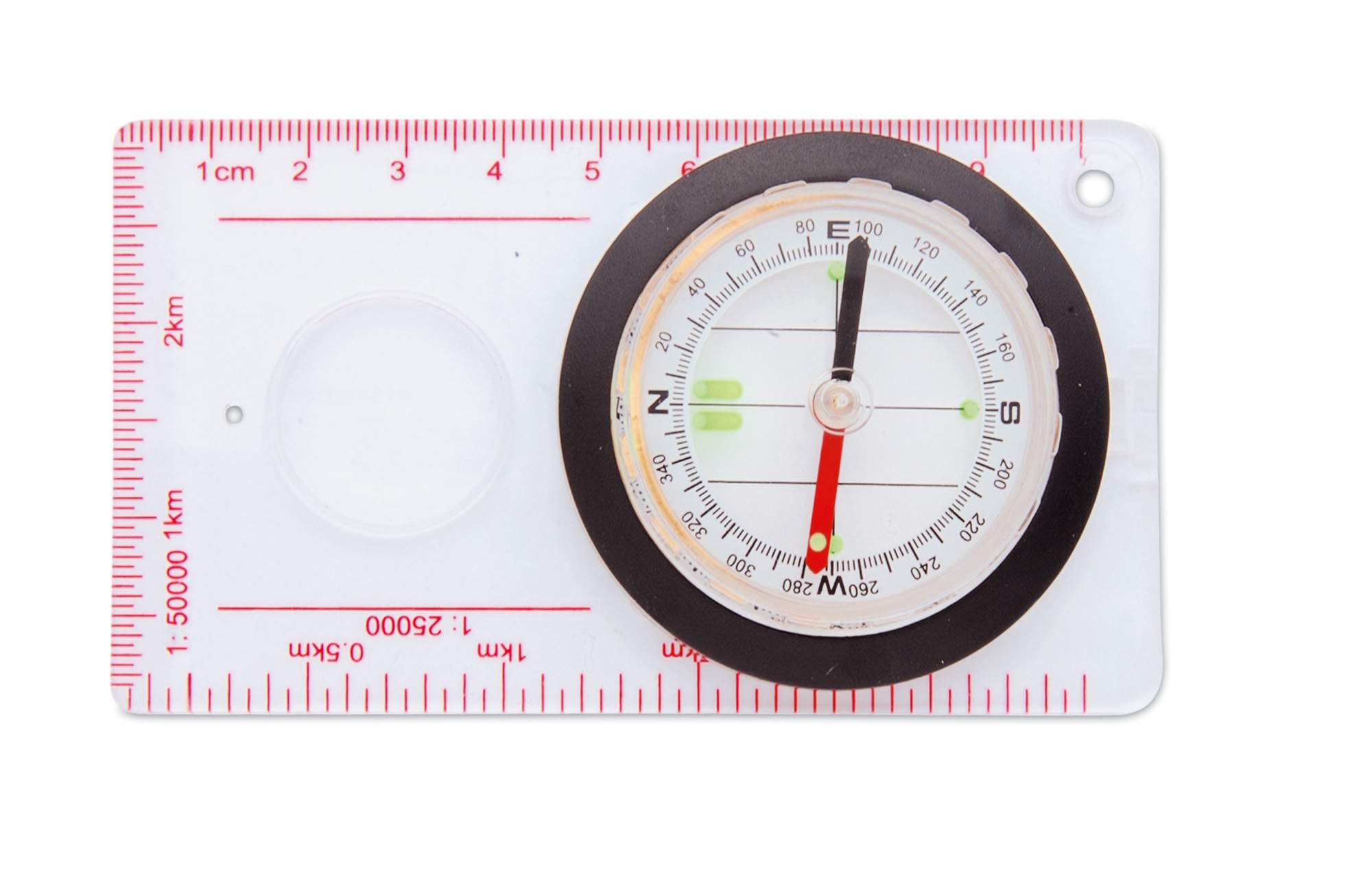 Conçue pour l'orientation sur une carte : se pose sur la carte avec vision par transparence. Plusieurs échelles graduées pour s'adapter aux différentes cartes : Etat Major, Artillerie, Randonnées...